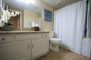 Elegant free standing tub in master with all new fixtures, cabinets and tile surrounds and huge shower with dual heads.